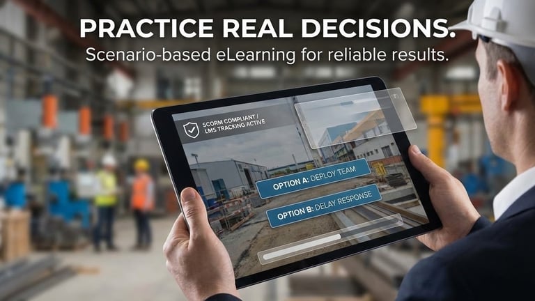 Scenario-based eLearning built for real workplace decisions and reliable LMS delivery.