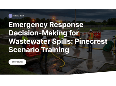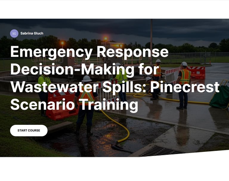 This scenario-based training module was designed to simulate a real-world emergency response situation in a municipal water utility environment. The course places learners in the role of a decision-maker responding to a wastewater spill in the Pinecrest service area.